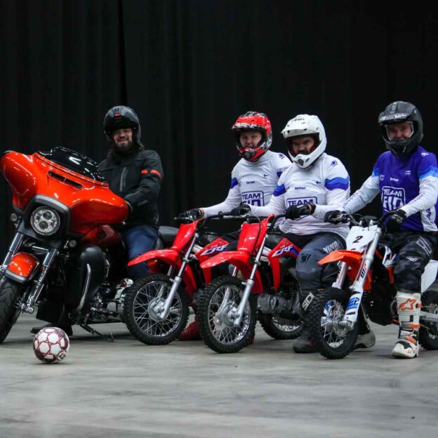MP 23 Moottoripyörämessut tuo 3. – 5.2.2023 Helsingin Messukeskukseen päivittäiset MP Motoball-turnaukset. Motoball on hauska ja vauhdikas moottoripyöräjalkapallo, jossa kolmen hengen joukkueet kisaavat minicross-pyörillä. Iso pallo, pienet pyörät ja rajattu tila takaavat vauhtia ja täpäriä tilanteita. MP Motoball vaatii taituruutta pyöränkäsittelyssä, aktiivista pelisilmää, poikkeuksellista pallonkäsittelytaitoa ja ennen kaikkea sopivaa kilpailuhenkeä pilke silmäkulmassa. Turnauksia järjestetään open-, pro- ja juniorsarjoissa.