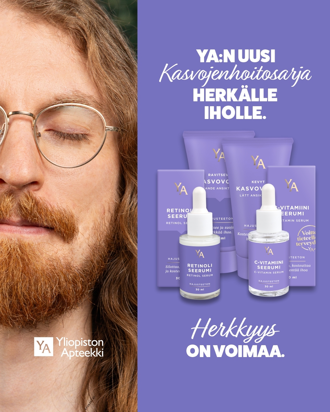 Uuteen YA-kasvojenhoitosarjaan kuuluu Kevyt kasvovoide, Ravitseva kasvovoide, C-vitamiiniseerumi sekä myöhemmin tulevat YA Retinoliseerumi ja YA Puhdistusgeeli. Sarja on suunniteltu kosteuttamaan ja vahvistamaan ihon suojakerrosta. Tuotteet sisältävät muun muassa hyaluronihappoa ja niasiiniamidia, jotka auttavat ihoa säilyttämään kosteutensa ja kimmoisuutensa. C-vitamiini tuo kasvoille luonnollista heleyttä ja suojaa ihoa ennenaikaisen ikääntymisen merkeiltä, kuten juonteilta, veltostumiselta ja pigmenttimuutoksilta.