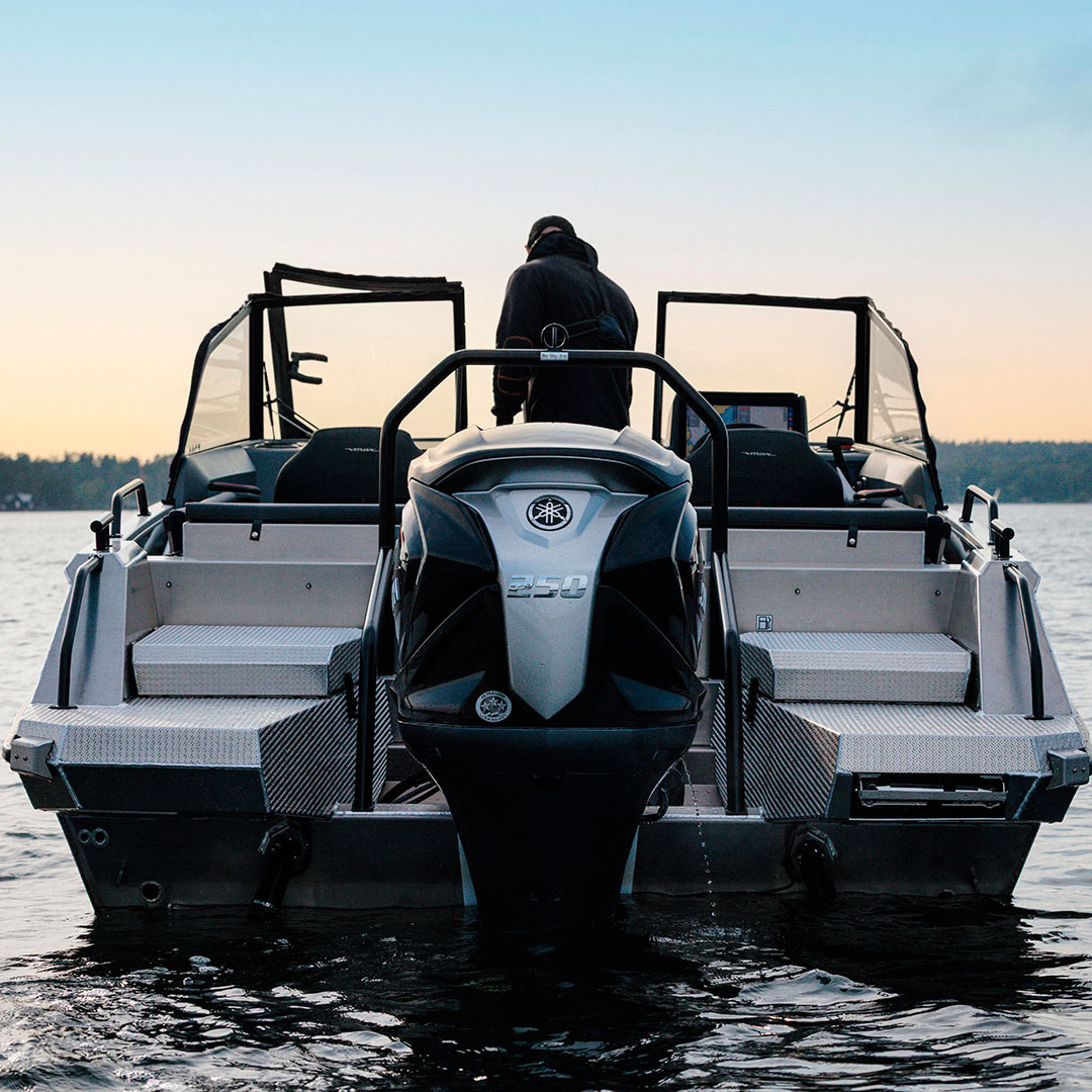 Finländarnas favoritbåtar är mångsidiga pulpetbåtar, beroende på modell utrustade med 30–60 hästkrafters utombordare. Alla har aluminiumbotten och ett slitstarkt kompositdurk – på Buster Lx är durken i aluminium.
